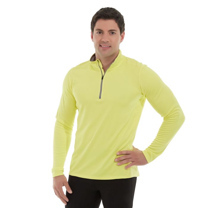 • Yellow 1/4 zip pullover. • Two chest pockets. • Standard fit. • Waterproof, breathable, seam sealed. • Cocona® performance fabric. • Machine wash/dry.